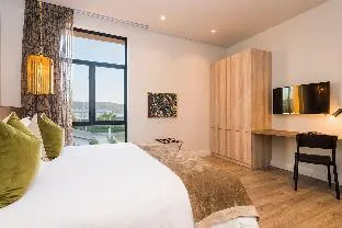 The hotel features thoughtfully designed streamlined rooms and suites, most equipped with convenient kitchenettes that provide guests with added flexibility during their stay. Each accommodation showcases modern amenities including air conditioning and complimentary Wi-Fi, ensuring comfort and connectivity throughout your visit. The clean, contemporary styling creates a peaceful retreat after days spent exploring Knysna's famous lagoon and surrounding attractions.